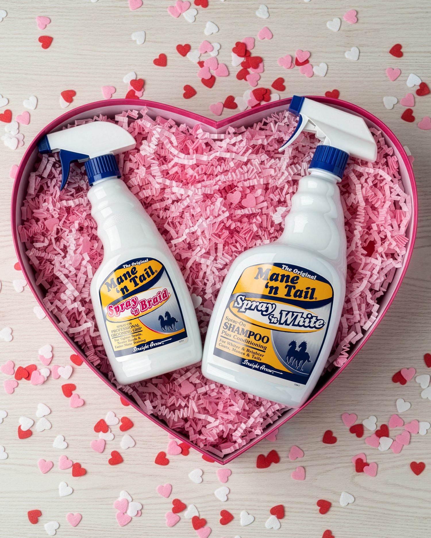 Fall in love with grooming care by Mane 'n Tail. With products like Spray 'n Braid which adds hold and prevents flyaways while braiding hair, and Spray 'n White a spray-on whitening shampoo for whiter & brighter coats, manes, and tails.